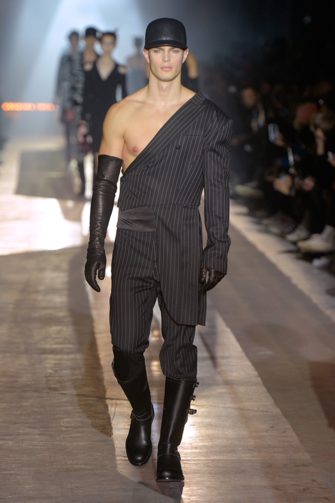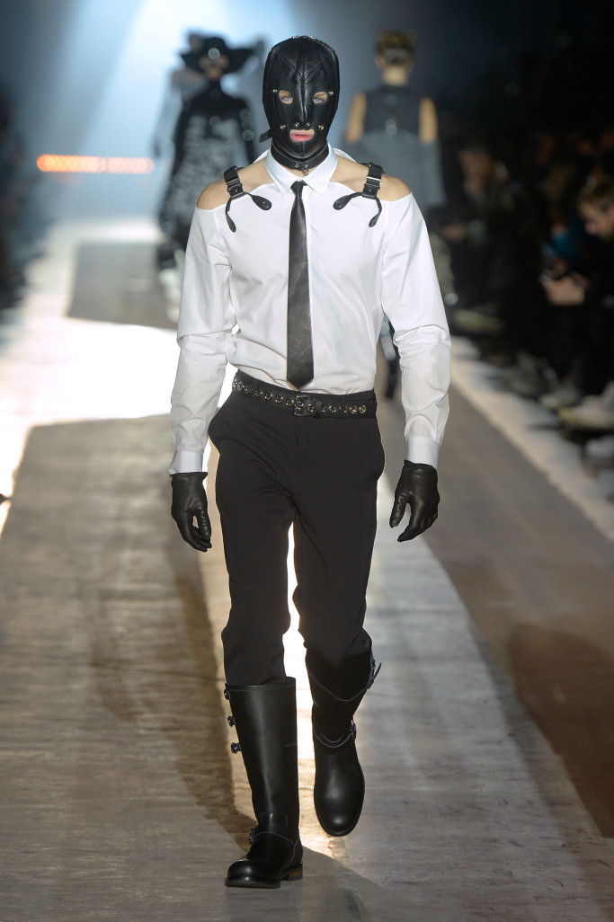 Основа цветовой гаммы радикальна – черный. Незначительная часть серых, бордовых, коричневых и зеленых моделей не нарушают общего впечатления от классической лаконичности мрака. Крой отличается асимметрией и провокацией жесткого эротизма. Рокировка предметов одежды, когда бюстгальтер и пояс для чулок поверх жакета, и разнообразие фактур – шёлк и кожа, латекс и перья, поражают воображение. В общем, Джереми Скотт снова умудрился удивить и даже шокировать, – всё работает на главную идею, радуя тех, кому милее погорячее…
